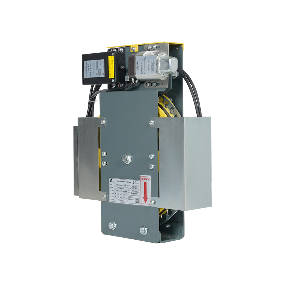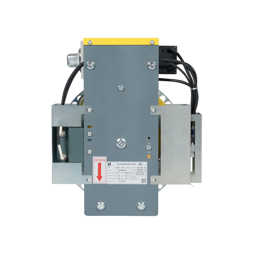 LOG09 ultra-thin overspeed governor with encoder features an ultra-thin design, making it particularly suitable for modern, compact elevator systems. Its core function is to detect the elevator's operating speed through both mechanical and electrical means. If overspeed is detected, it quickly triggers the safety clamp and brake system, ensuring safe operation.The overspeed governor features bidirectional detection, monitoring both the ascent and descent speeds of the elevator, ensuring a timely response to overspeed conditions in either direction. Furthermore, it is equipped with a rotary encoder and sensor for enhanced detection accuracy and reliability.