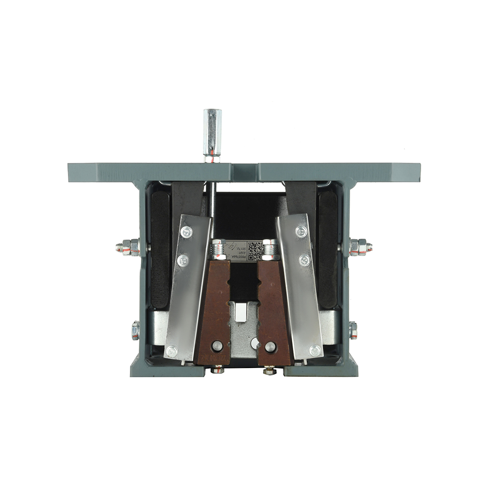 The LSG03 elevator progressive safety gear device lift safety clamp utilizes a dual-wedge structure with a U-shaped leaf spring as the spring element. In the event of an elevator overspeed or malfunction, friction between the wedges and the guide rails provides smooth braking, effectively stopping the elevator car.