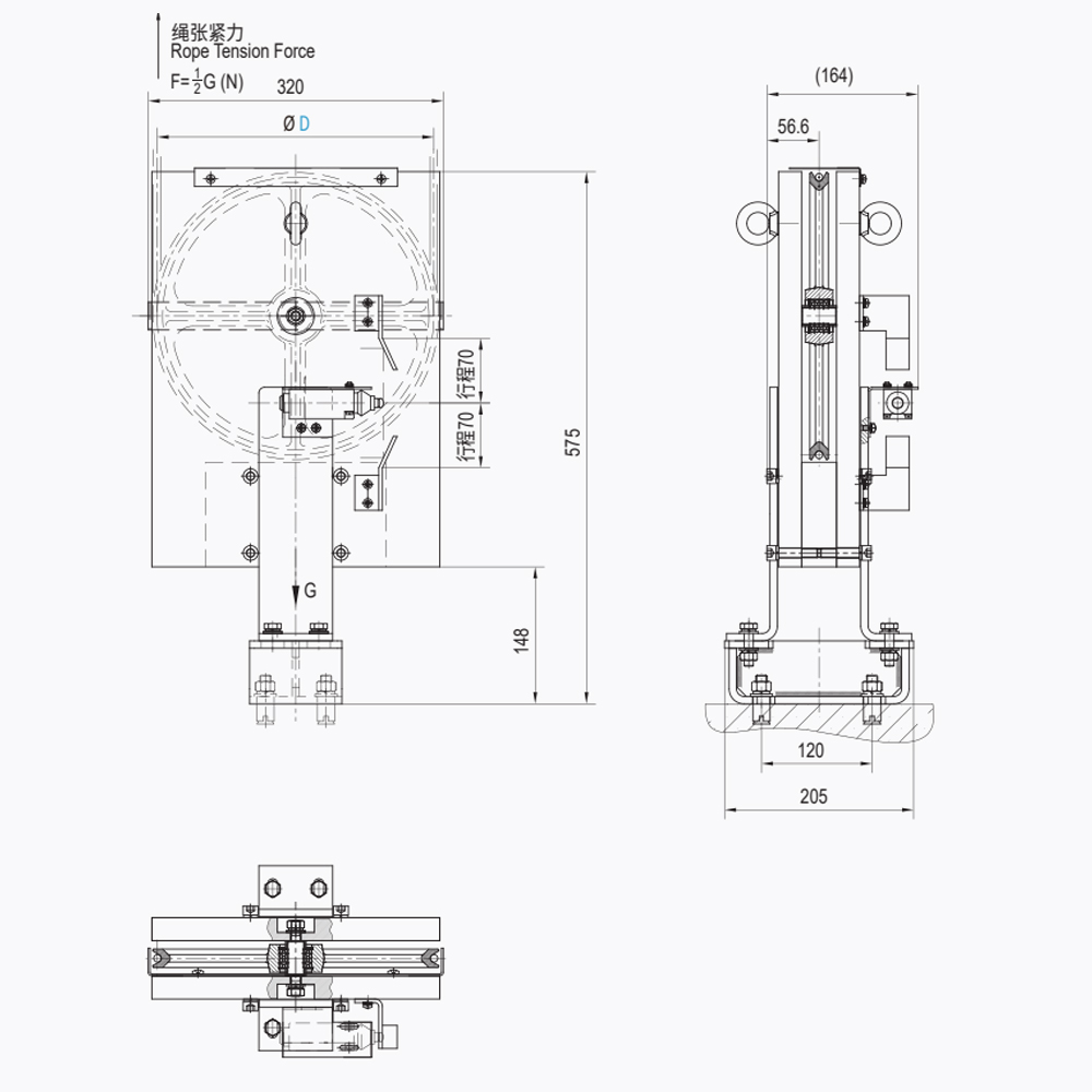 LTD03 elevator tension device elevator safety component is a vertical elevator tensioning device with a wide adjustable range. Its biggest feature is that it can adapt to the contraction or extension of the wire rope under complex climatic conditions.