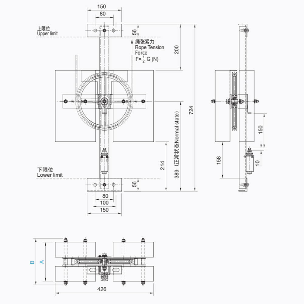 LTD06 lift tensioning device elevator safety parts adjust the traction rope tension, effectively preventing rope slack caused by plastic deformation, thereby ensuring smooth elevator operation under various operating conditions. Its rational structural design is suitable for a variety of elevator configurations and can be matched to the speed specifications and actual operating conditions of the car roof smoothing device to ensure optimal tensioning effect.